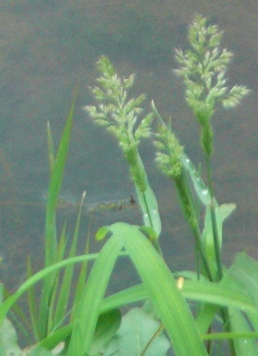 小穂は白緑色(ときに赤紫色)で2つの小花があり、