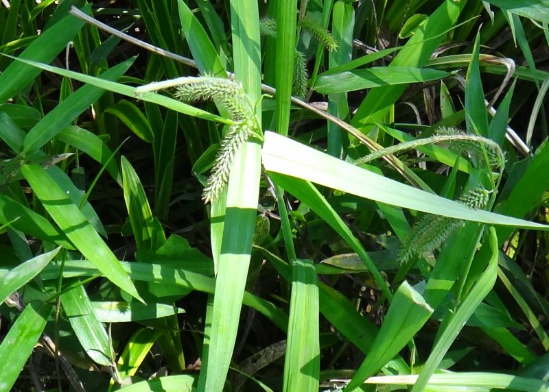 雄性の頂小穂は線形。雌性の側小穂数本は円柱形で湾曲する。(2015/5/10)