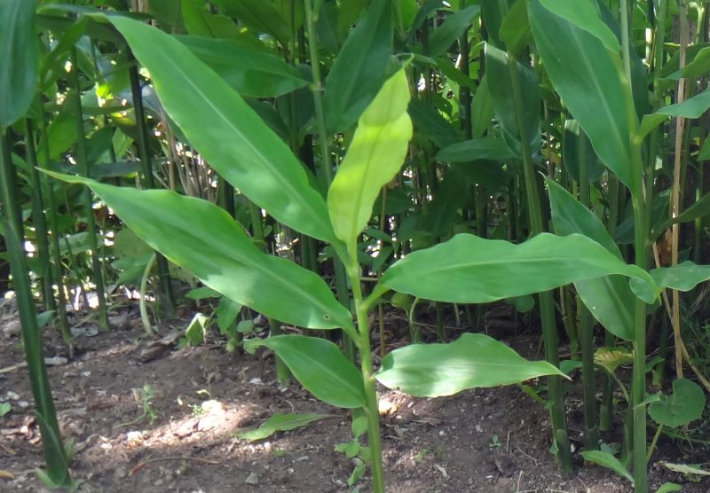 肥大する地下茎から偽茎(葉鞘が重なり合って丈夫になったもの)