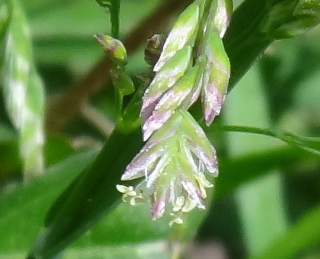 花糸の先の葯は、筆記体のx字形になっている。(雌しべは頴の中にあって見えないが羽毛状。)