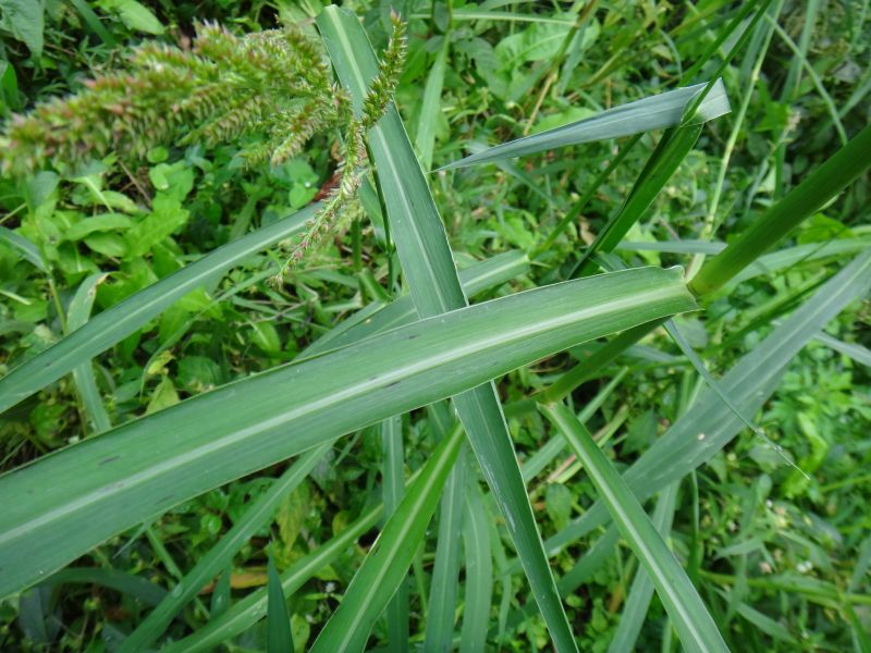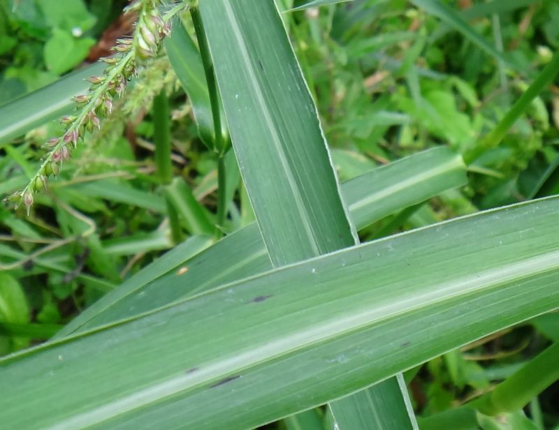 タイヌビエ:葉の縁が白い、小穂は約5ミリで淡緑色、芒のあるものがある。