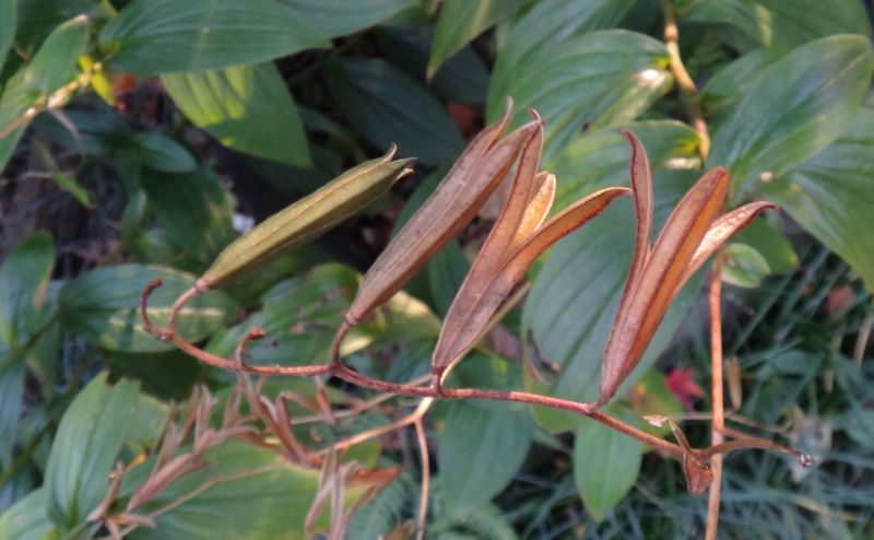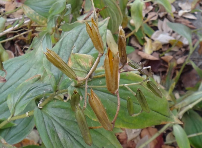タイワンホトトギスの果実。細長くて3稜がある。(2014/11/16)