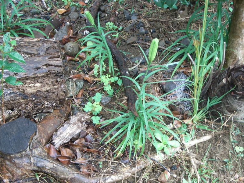 種で芽生えた1年目は細長い葉を出すだけで咲かない。