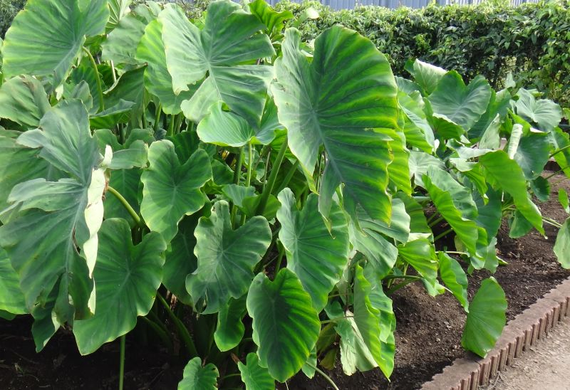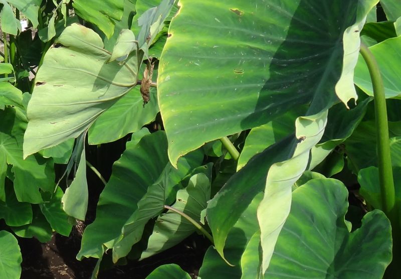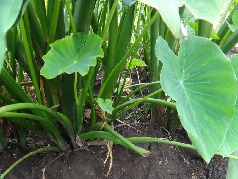 葉柄は叢生し、サトイモより緑色が濃いように見える。