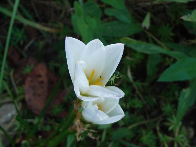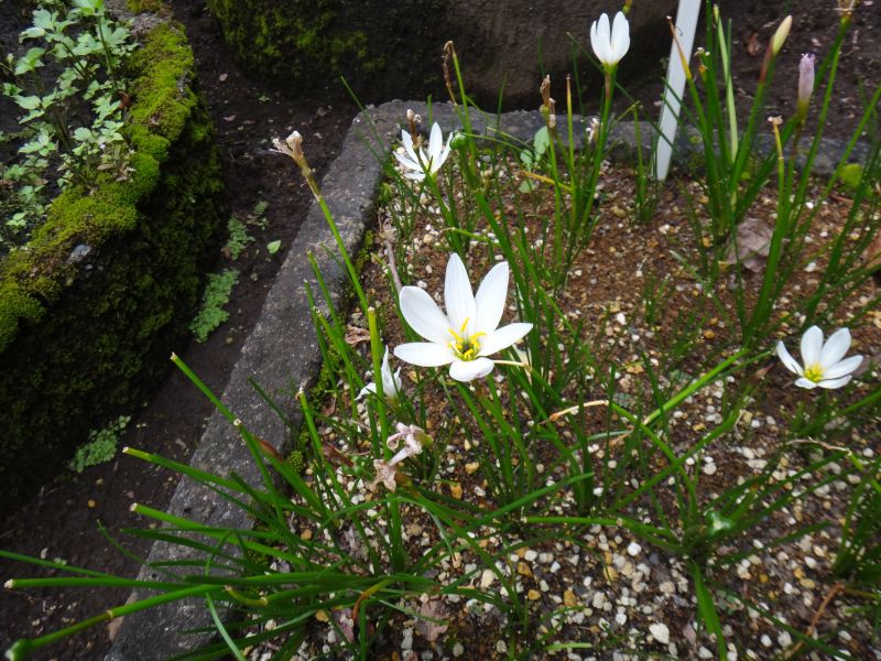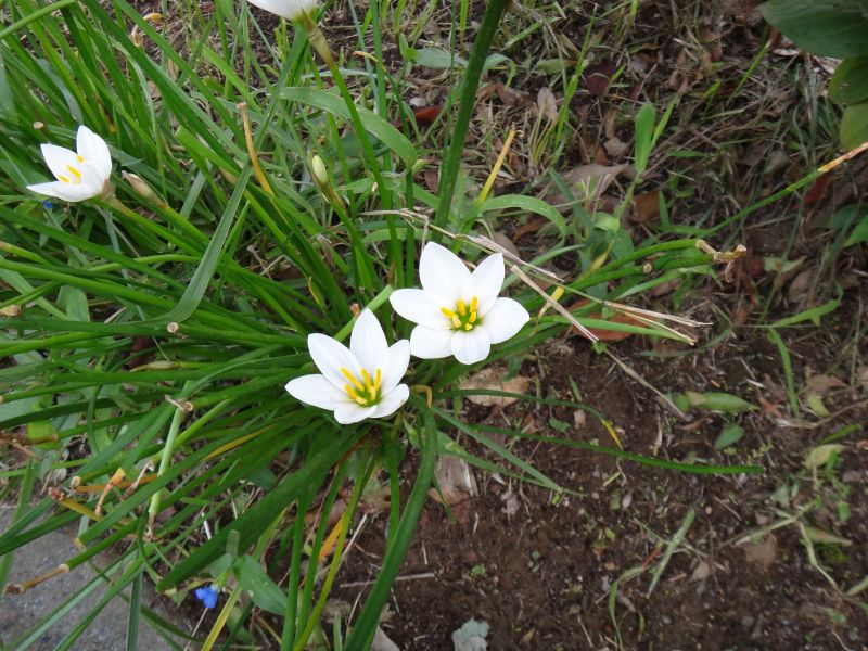 各花茎の先に白い6弁花を上向きに単生させる。花弁は長楕円形である。