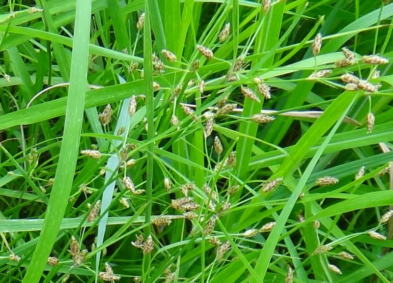 小穂は長さ5〜8ミリの長卵形で、鱗片は広卵形で光沢がある。