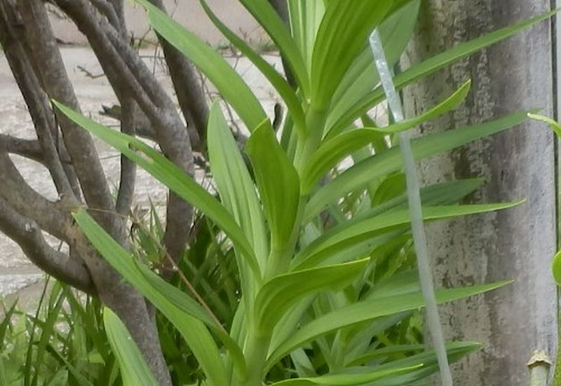 茎は1本だけで直立し、頂部分で花茎が数本出る。(2023/6/4)