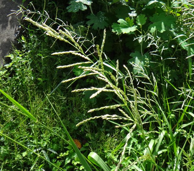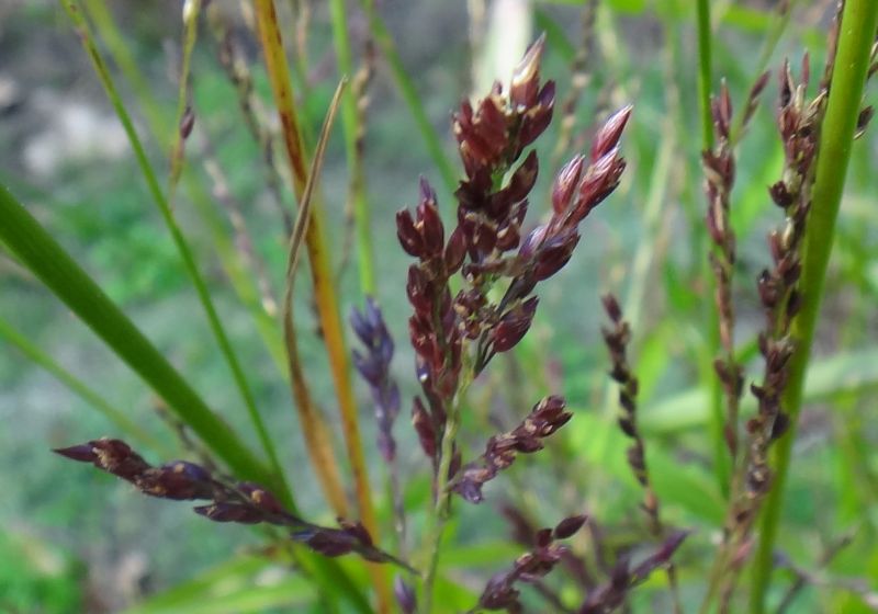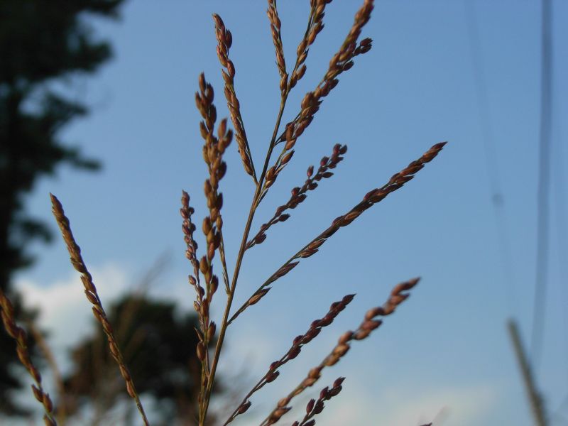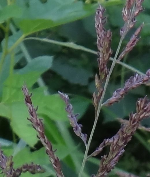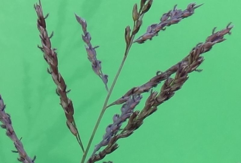 紫色か緑色の小穂を基部から先まで隙間なく並べてつける。
