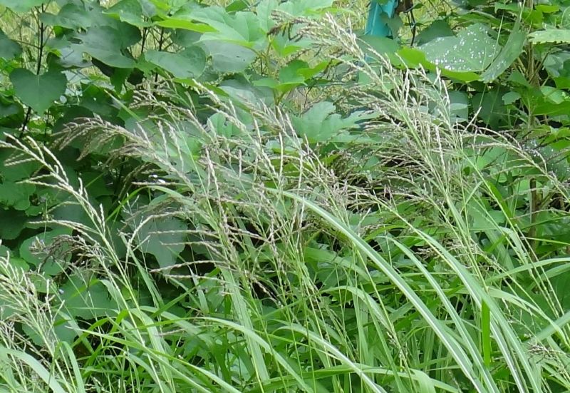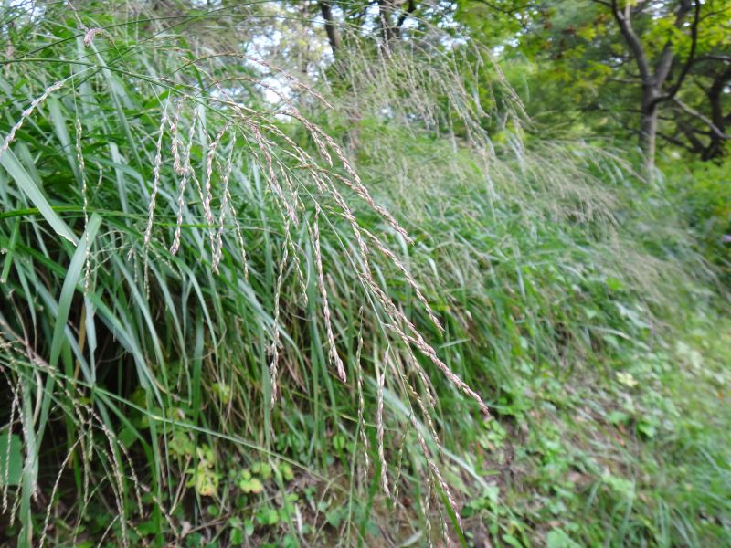小穂は緑色かまたは帯赤色で、芒はない。(2013/9/15)