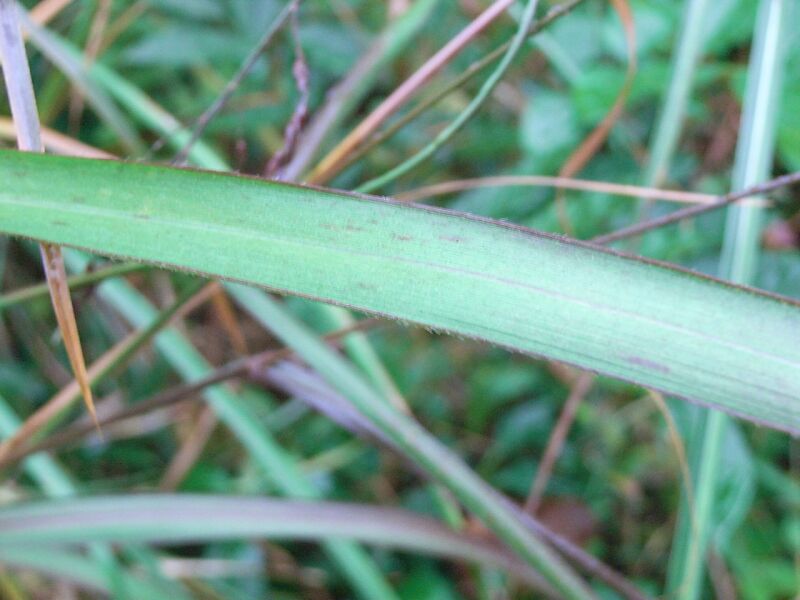 葉の縁が内側へ少し巻く。葉鞘は節間より短い。