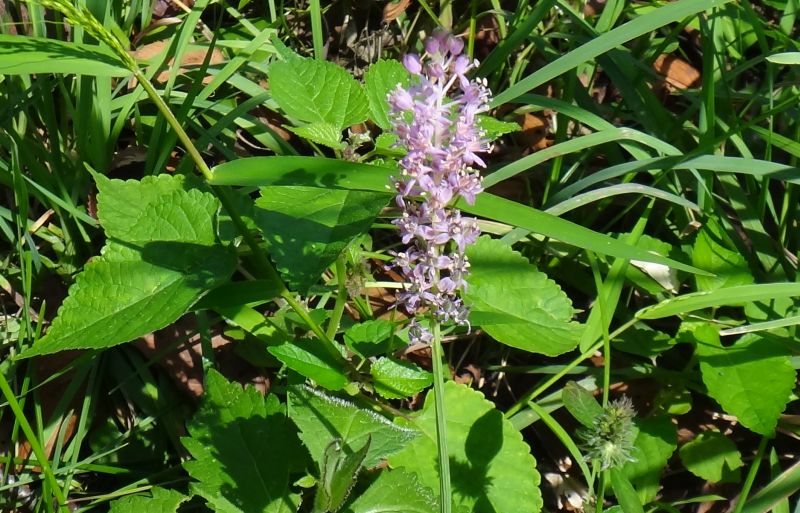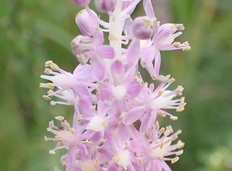 初秋に秋葉と花茎が出て、その先に淡紅紫色の6弁花を穂状に多数つけ、