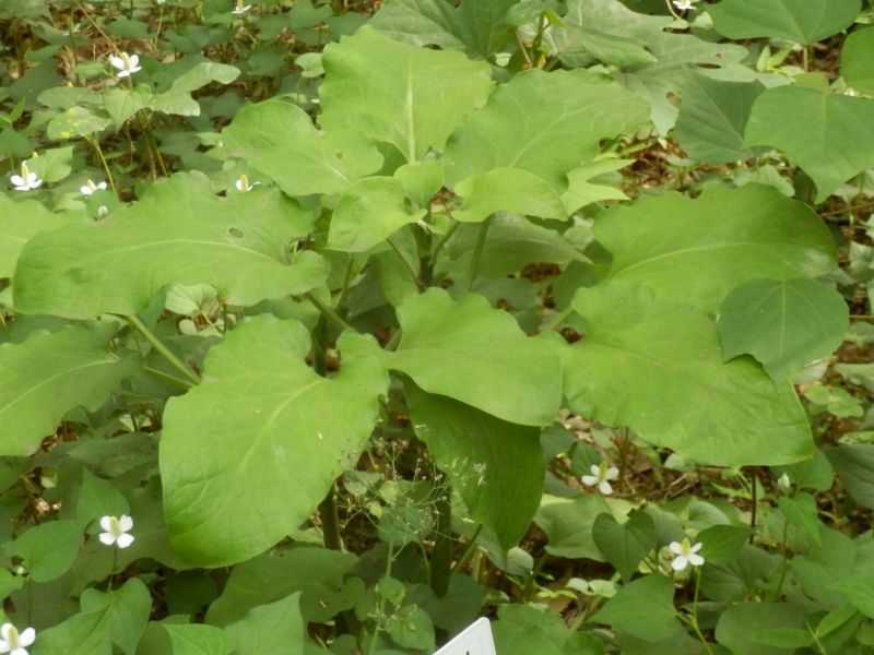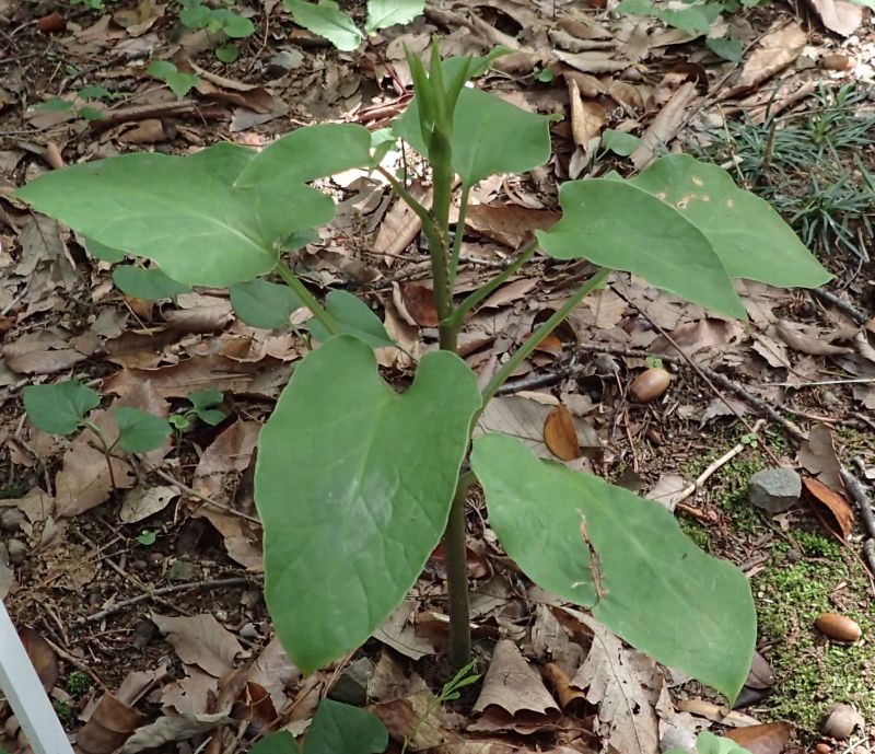 葉は大きな卵状楕円形で、基部が心形にくぼむ。