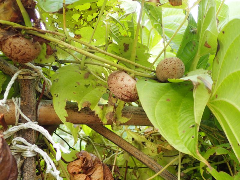 葉腋に大きな偏球形のむかごをつける。
