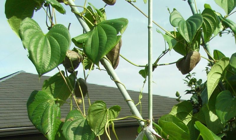 つるは長さ10メートルぐらいにのびて他のものに巻き付く。