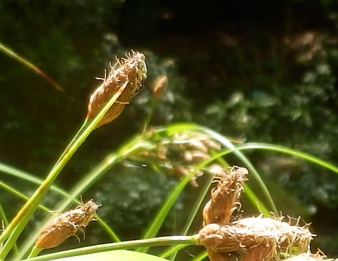 花径の先から長い葉状の苞が数本出て、それらに挟まれて小穂がのぞく。