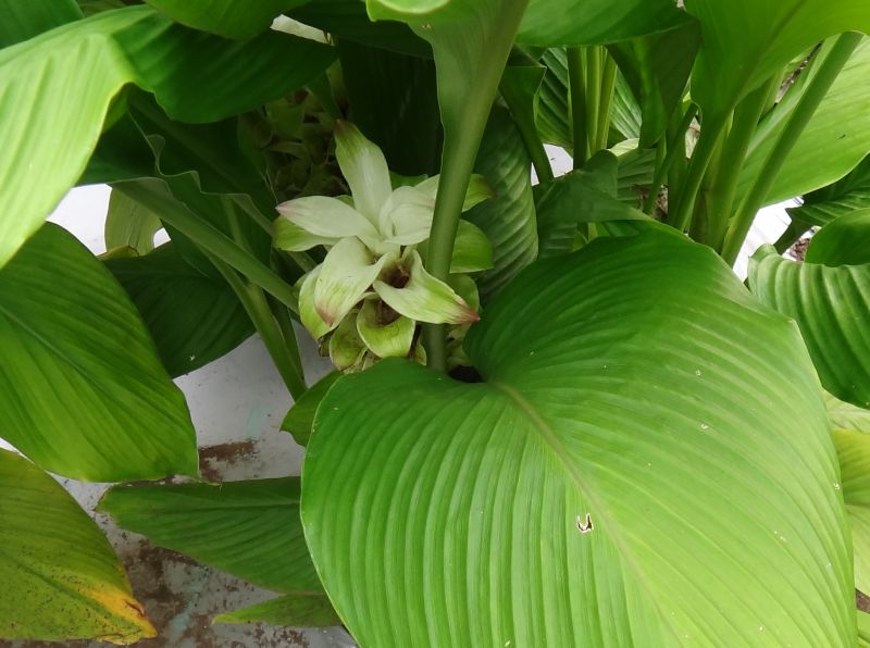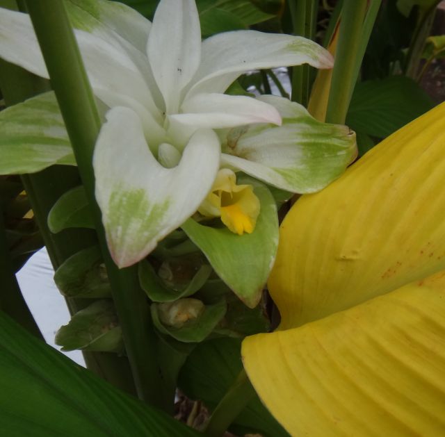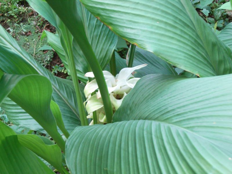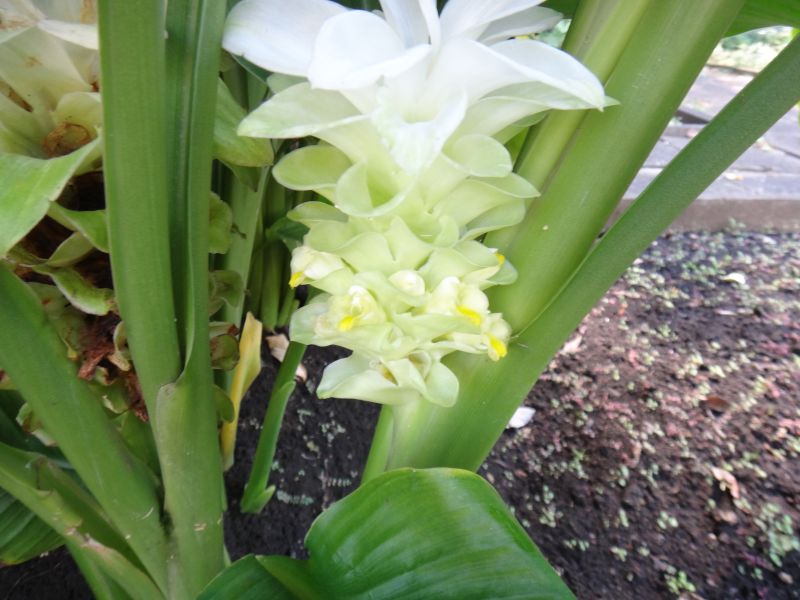 秋ウコン(ターメリック)は秋に白い花(苞葉)を咲かせ、