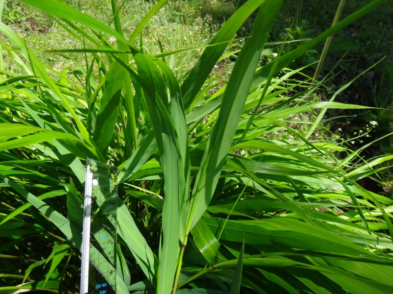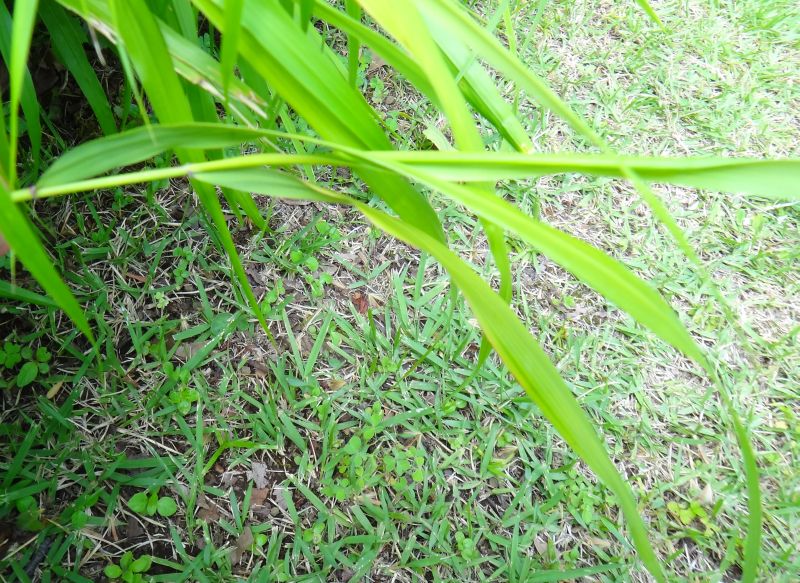 末端に淡緑色で長さ1〜2センチの細長い小穂がつく。