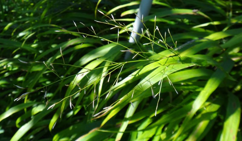 細長い小穂がまばらについた円錐花序が出て、先が垂れ下がる。(2009/9/10)