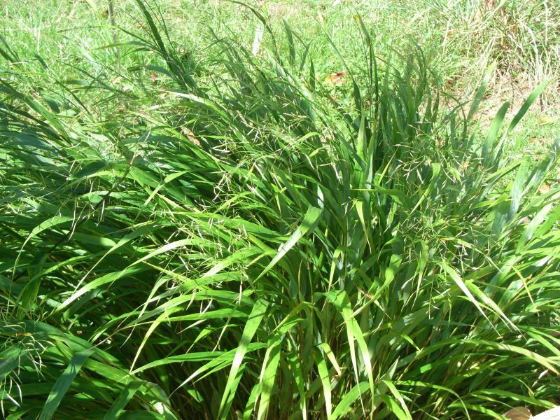 密に叢生した細い茎の先に線形の葉が茂り、秋に黄葉する。